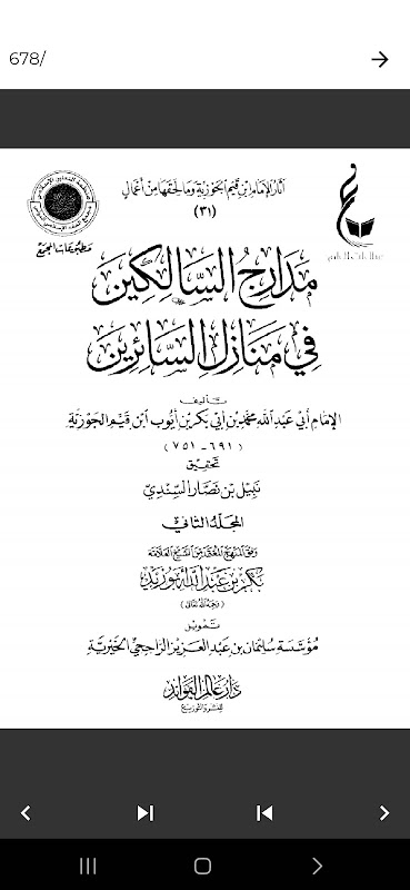 Die Anwendung, die das Buch Madarij al-Salikeen erklärt, wird Ihnen dabei helfen, und die Anwendung wird Ihnen auch dabei helfen, das Buch Madarij al-Salikeen einfach auf Ihr Telefon herunterzuladen.