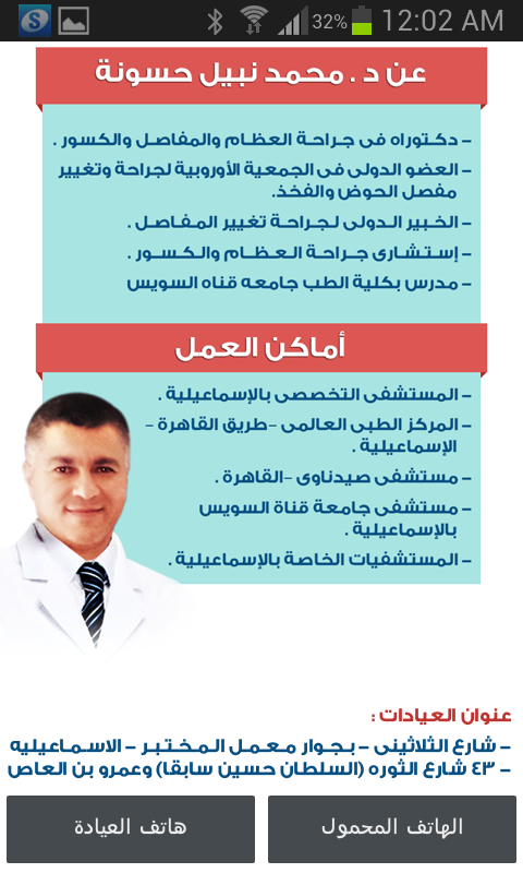 - Die Anwendung enthält einen speziellen Abschnitt der wichtigsten Informationen, um Knochen- und Gelenkchirurgie und die wichtigsten Tipps und Artikel, die ständig von Dr. Mohammed Nabil aktualisiert werden persönlich zusammen.