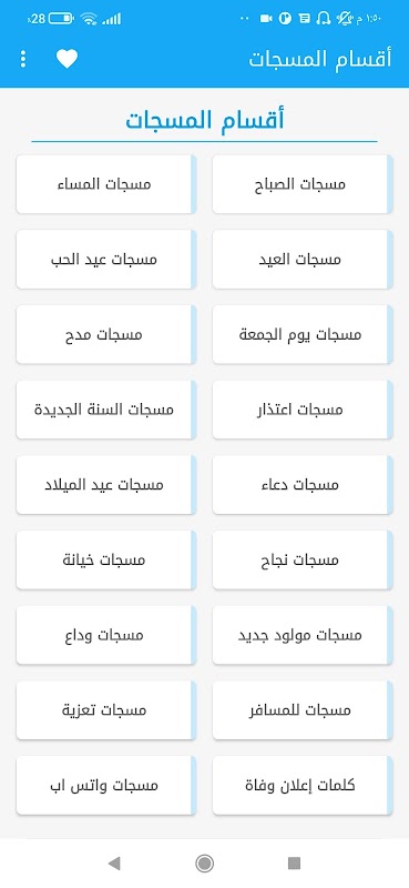 Das Msjati-Programm, ein Programm, das mehr als 20.000 Nachrichten oder High-End-Wörter oder -Fälle enthält, und im Allgemeinen enthält dieses Programm viele verschiedene Nachrichten, die in verschiedene Abschnitte und Klassifikationen eingeteilt wurden, wie z. B. (Islamische Nachrichten, Liebesbotschaften, Romantik und Spinnen, Gedankenbotschaften und Herzensworte, Msjat Weisheit und Predigten, Msjat Sehnsucht und Nostalgie, Msjat Mutter, Msjat Traurigkeit, Msjat Vorwurf, Msjat Verlobung, Msjat Hochzeit, Msjat Verschiedenes, Msjat Tipps, Msjat Abend, Msjat Morgen, Msjat Ramadan, Msjat Freitag, Msjat Eid al-Fitr, Msjat Eid al-Adha, Msjat für Freunde, Msjat Lob, Msjat Entschuldigung, Msjat Neujahr, Msjat Gebet, Msjat Geburtstag, Msjat Valentinstag, Msjat Erfolg, Msjat Verrat, Msjat neu geboren, Msjat-Ehetag, Msjat-Valentinstag, Msjat-Geburtstag, Ehemann oder Ehefrau, Durar-Nachrichten, Beileidsnachrichten, Abschiedsnachrichten, Todesanzeigenachrichten, Facebook-Nachrichten, WhatsApp-Nachrichten) und andere Abschnitte.