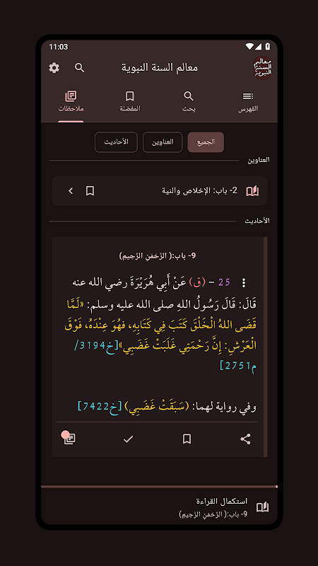 - Notizen hinzufügen: Schreiben Sie Ihre eigenen Notizen zu jedem Kapitel oder Hadith.