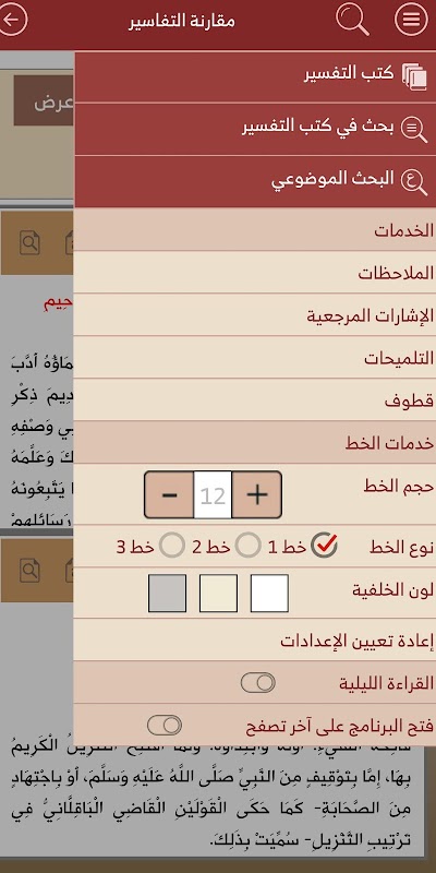 * Zeigen Sie Verse und Hadithe in einer bestimmten Farbe und Schriftart an. (Anzeigeseite).