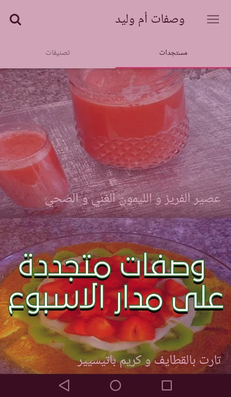 * الوصفات مقسمة إلى عدة أقسام حتى يسهل الوصول إليها