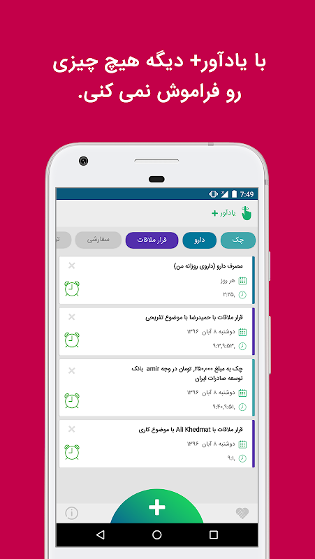 اپلیکیشن یادآور+ به شما کمک می کنه دیگه چیزای مهم رو فراموش نکنی!