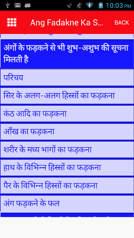 कई बार हमारे शरीर के अंग फड़कते है. हम अक्सर सोचते है क्या यह फड़कना अच्छा था या बुरा. इस एप्प में आप अंग फड़कने के शुभ और अशुभ लक्षणा पड़ेंगे