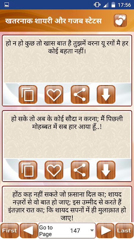 This app also has the collection of funny and khatarnak shayari which can make anybody laugh and of course is shared mostly by college going girls and boys.