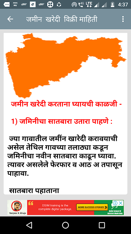 Diese App enthält Informationen zum Kauf und Verkauf von Land in Marathi Sprache