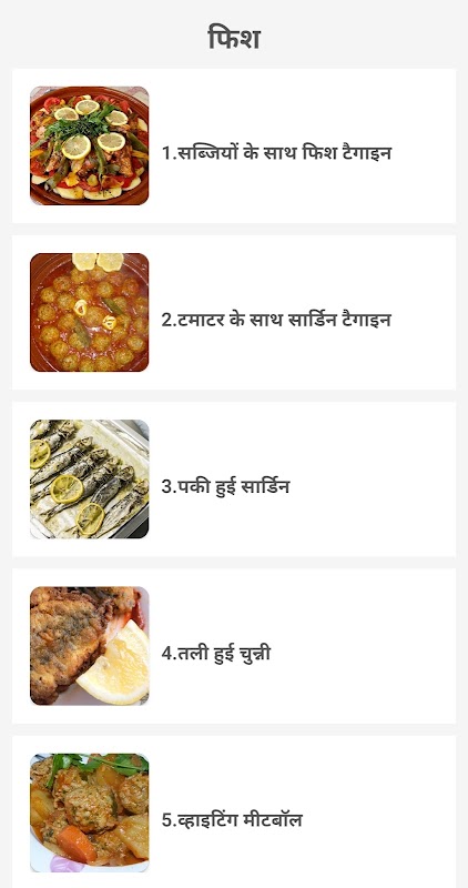 In dieser App finden Sie eine umfassende Liste mit verschiedenen Arten von Rezepten, wie Tajine, Kasba, Couscous und viele mehr. Die allgemeinen Informationen, Zutaten und Methoden dieser Rezepte werden Ihnen in Hindi zur Verfügung gestellt.