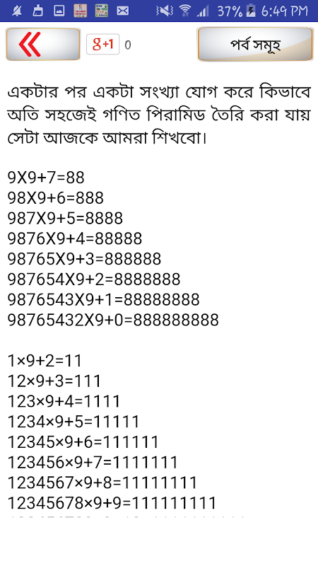 গণিত সামাধান অ্যাপটিতে মূলত অঙ্কের ম্যাজিক বা গণিতের মজা কিভাবে পাওয়া যায় তা খুব সুন্দর ভাবে উপস্থাপন করা হয়েছে. আমাদের প্রায় সবার মাঝেই কমবেশি গণিত ভীতি আছে. এর মধ্যে রয়েছে হাজারও গণিতের সূত্র বা গনিতের সূত্র মনে না থাকার প্রবনতা. তাই অনেকেই বাধ্য হয়ে গনিত বই এর পাশাপাশি গণিত গাইড এর অনুসরন করে থাকে, কিন্তু বাজারের সব গনিত গাইড থেকে কোনদিন গণিত বিশারদ হওয়া যায়না. গণিত শিখার জন্য উত্তম হচ্ছে গনিতের সহজ টেকনিক ও সূত্রাবলী মুখস্থ রাখা. যাতে করে যেকোনো সময় যেকোনো অংকের সমাধান খুব সহজেই গণিতের শর্টকাট টেকনিক দিয়ে করে ফেলা যায়. আমাদের এই গণিতের মজা অ্যাপ থেকে জানতে পারবেন বিসিএস প্রশ্ন ব্যাংক bcs প্রিলিমিনারি সহ বিসিএস লিখিত গণিত ও বিসিএস প্রস্তুতি. অংক শিক্ষা অ্যাপ এ রয়েছে গনিতের সকল ইতিহাস ও খুঁটিনাটি বিষয়াবলী.