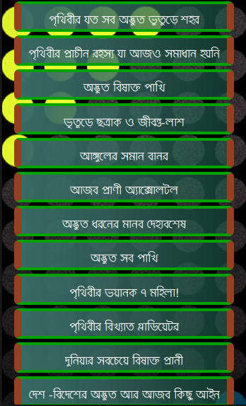 আমরা স্বভাবতই এই রকম অদ্ভুত ধরনের জিনিস দেখতে ও জানতে পছন্দ করি। আমাদের এই এপ্লিকেশনে পৃথিবীর নানাপ্রান্তে ছড়িয়ে ছিটিয়ে থাকা অদ্ভুত জিনিসগুলো নিয়ে বিস্তারিত বর্ননা ও রিলেটেড ছবি দিয়ে সাজিয়েছি।