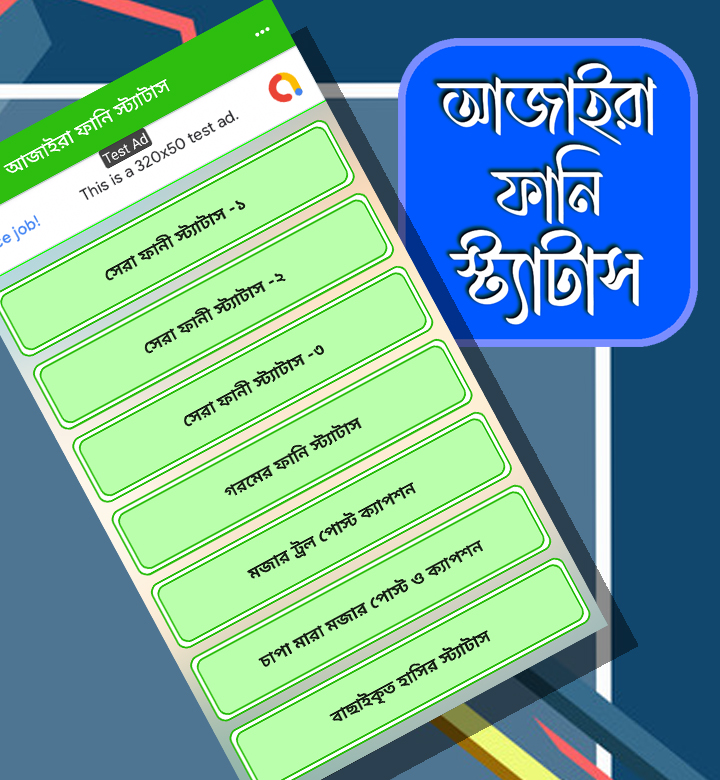 আজাইরা ফানি স্ট্যাটাস নামটি শুনেই বুঝতে পারছেন এই অ্যাপ সম্পর্কে। প্রিয়োজনদের সাথে আজাইরা ফানি পোষ্ট করুন খুব সহজেই। আজাইরা ফানি ক্যাপশন দিয়ে আপনি এটাকে আজাইরা ফানি এসএমএস হিসাবেও ব্যাবহার করতে বাংলা ট্রল ও মজার পোষ্ট তৈরি করেছি, জোকস ও মজার কৌতুক থেকে যা শুনে আপনার মন আনন্দে ভরে উঠবে। নিউ জেনারেসনের পোলাপান আজকাল বাংলা ফানি স্ট্যাটাস সোসাল মিডিয়াতে পোস্ট করতে দেখা যায়। বাংলা ফানি অ্যাপ থেকে তা সহজেই পোস্ট করা যায়।