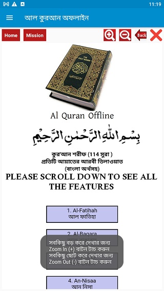 2. Sie können englische und bengalische Übersetzungen aller Sure-Verse sehen, einschließlich der bengalischen Aussprache.