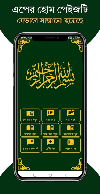 Jeder arabische Vers wird mit bengalischer Aussprache und leicht verständlicher bengalischer Übersetzung präsentiert. Diese Methode hilft Nutzern nicht nur, den Koran zu lesen, sondern auch, intensiv über seine Anleitung und Bedeutung im täglichen Leben nachzudenken.