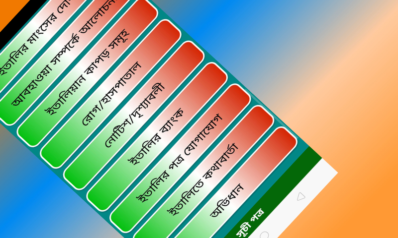 Lerne Italienisch Sprache offline mit ইতালীয়ান ভাষা শিখুন. Unsere App ist kostenlos und bietet einfache Möglichkeiten, die italienische Sprache für die Bangla sprechenden Menschen zu lernen.