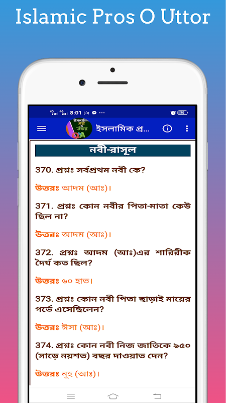 এই অ্যাপটির দ্বারা আপনি সহজে ইসলামিক কুইজ প্রশ্ন ও উত্তর ও ইসলামিক জিজ্ঞাসা ও উত্তর সম্পর্কে জানতে পারবেন ।