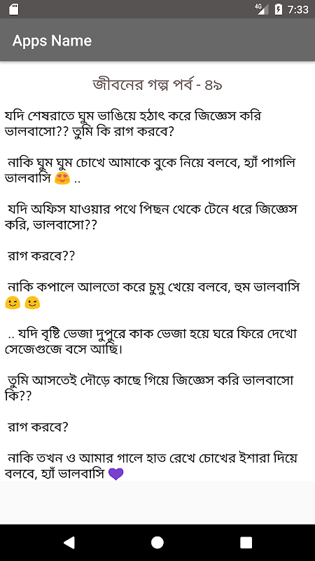 আমাদের ভালবাসার সকল কষ্টের জীবন কাহিনী নিয়ে সাজানো হয়েছে এই বাস্তব কষ্টের জীবনের গল্প এপ্সটি । ভালবেসে হয়ত বা অনেকেরই জীবন কষ্টে ভরপুর হয়ে নিঃশ্বেস হওয়ার উপক্রম । প্রেম কাহিনী, জীবন কাহিনী এগুলো প্রায় সবার জীবনেরই নিত্যদিনের ঘটনা । প্রেম কাহিনী, জীবন কাহিনী তে কেউ সুখী আবার কেউ দুঃখী । কারও জীবন কষ্টের আবার কারও জীবন সুখের । ভালবাসার গল্প, কষ্টের ভালবাসার গল্প, কষ্টের জীবেনের নানা কাহিনী নিয়ে তৈরি করা হয়েছে আমাদের এই কষ্টের জীবনের গল্প এপ্সটি । আমরা তো অনেকেই জীবনে কত ভালবাসার গল্প, ভূতের গল্প,কষ্টের ভালবাসার গল্প, কষ্টের জীবন কাহিনী, কষ্টের জীবনের বাস্তব গল্প নিয়ে তৈরি করা নানান রকম এপ্স পড়ে থাকি । আর তাই আমাদের জীবনের নানা কষ্টের কথা গুলো নিয়ে তৈরি করা এই কষ্টের জীবনের গল্প এপ্সটি পড়বেন । আর আমাদের এপ্সটি পড়ি আপনার অবশ্যই অবশ্যই ভাল লাগবে । ইনশাআল্লাহ ।