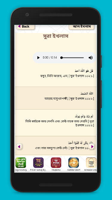 our 5 bangla kalima and 25 small bangla surah app .25 small surah mp3, it has good pronunciations in arabic as well as bengali translation so that you can easily understand 25 surah . If you like our bangla surah kalima apps then rate with with 5 star and share it with your friends. Please don’t forget to give 5 star for our app