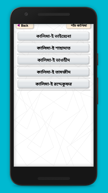 একজন মুসলিম হিসেবে আপনার অবশ্যই (5 kalima) কালিমা সমূহ মুখস্থ থাকতে হবে । তাই আমরা বাংলা কালিমার অর্থ উচ্চারণ ও অনুবাদ একসাথে করে এনেছি এই অ্যাপসে যেন আপনি খুব সহজেই মুখস্ত করতে পারেন। এছাড়া আমরা ইংরেজী অনুবাদ ও অন্তর্ভুক্ত করেছি এখানে।kalima bangla and english দুটোই আপনাদের জন্য দেওয়া আছে।৫ কালিমা অডিও ও আছে এই অ্যাপসটিতে। ৫ কালেমা অথবা ৫ কালিমা প্রত্যেক মুসলমানের জন্য খুবই গুরুত্বপূর্ণ একটি বিষয়।আমরা ছোট বেলায় মক্তব-মাদ্রাসায় গিয়ে প্রথম কালেমা মুখস্থ করি। বড় হতে হতে দীর্ঘ দিন চর্চা না থাকার কারণে দুই একটা ছাড়া আমাদের আর তেমন মনে থাকে নাহ। তাই আমরা ৫ কালিমা (five kalima) অ্যাপসটি বানিয়েছি হাতের কাছে রেখে যেকোন সময় যেকোন পরিস্থিতিতে যেন পুনরায় মনে করা যায় কালিমা সমূহ।