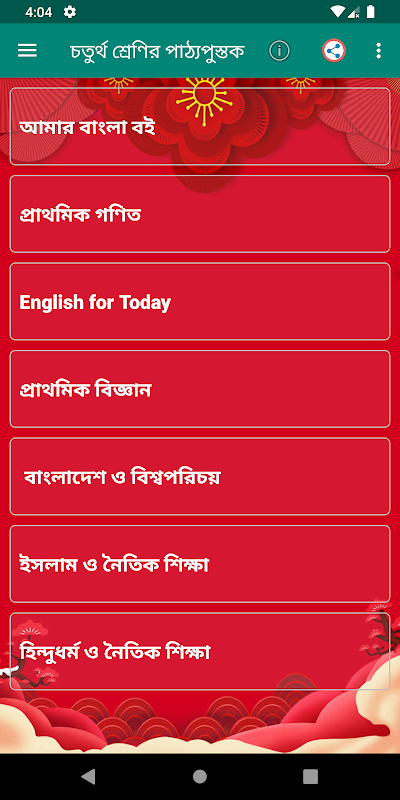 জাতীয় শিক্ষাক্রম ও পাঠ্যপুস্তক বোর্ড অনুমোদিত পাঠ্যবই নিয়ে আমাদের এই অ্যাপটি তৈরি করা হয়েছে। চতুর্থ শ্রেণীর শিক্ষার্থীদের বোর্ড বইগুলো সংযোজিত করা হয়েছে।