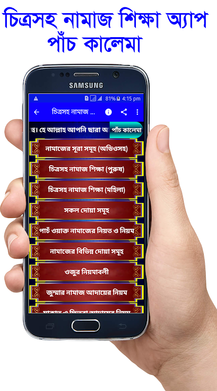 বাংলা নামাজ শিক্ষা ও নামাজের প্রয়োজনীয় সূরা অ্যাপটিতে নামাজের সকল বিষয় বিস্তারিত তুলে ধরা হয়েছে