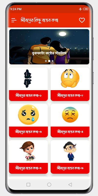 Das menschliche Leben ist sehr vielfältig. Unser Leben ist voller Glück und Traurigkeit, Hoffnung und Enttäuschung, Schmerz und Leid, Kummer und Kummer. Menschen akzeptieren die Realität zu unterschiedlichen Zeiten im Leben. Daher gibt es in dieser App entsprechend den Merkmalen der Realität verschiedener schwieriger Phasen des menschlichen Lebens eine Liste mit Status, Zitaten, Bildunterschriften und Bildern über das wirkliche Leben.