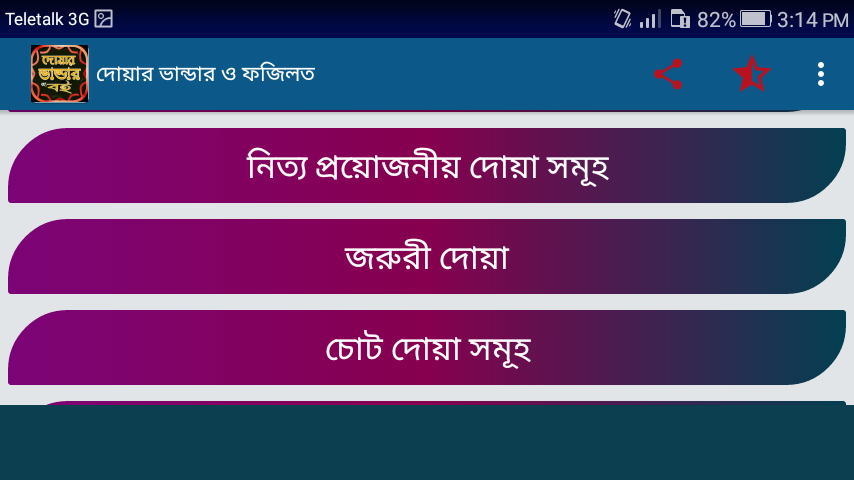 কোন দুআ পড়লে কি হয় এটি একটি বাংলা ইসলামিক বই ( islamic books in bangla app). অ্যাপটির মাধ্যমে আপনি দোয়ার ফজিলত সম্পর্কে যানতে পারবেন।