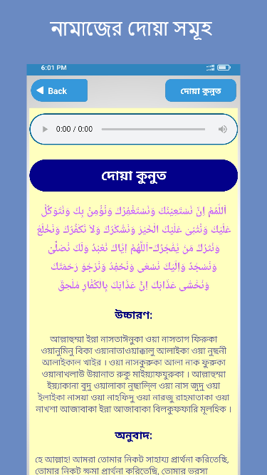 এছাড়াও নামাজের প্রয়োজনীয় দোয়া ও সূরা নিয়ে আছে পৃথক ক্যাটাগরি। যেখানে namazer sokol doa যেমন সানা, দোয়া কুনুত, দোয়া মাসুরা kol sokol doa পাবেন। নামাজের প্রয়োজনীয় সূরা ক্যাটাগরিতে পাবেন ১৩ টি নামাজের ছোট সূরা অডিও অডিও।