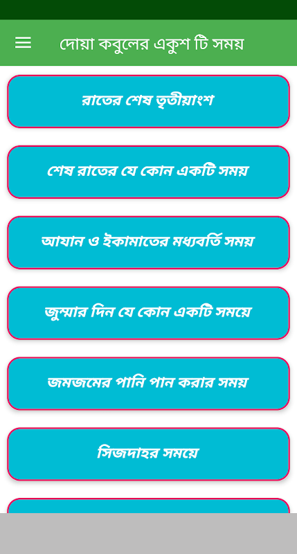 দোয়া কবুলের উত্তম একুশটি সময় নিয়ে এই এপস্ টি করা হইয়াছে.