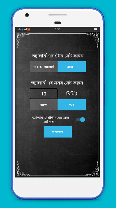 আপনি আপনার ইচ্ছে মতে সালাতের আগে ও পরে আজান সেট করে রাখতে পারবেন. সালাতের নিদিস্ট সময়ের আগে ও পরে তথা আপনার সেট করা সময়ে আজান এলার্ম বেজে উঠবে. এতে করে আপনি সহজেই নামাজের নিয়ত করতে পারবেন. শয়তান আপনাকে ধোকা দিতে পারবে না. পাচ ওয়াক্ত নামাজের সময় আপনি সালাতের জন্য মনস্থির করতে পারবেন.