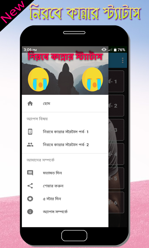 নিরবে কান্নার স্ট্যাটাস নিয়ে আমাদের এই অ্যাপসটি। এই অ্যাপসটিতে পাবেন ভালোবাসার মানুষকে নিয়ে কষ্টের স্ট্যাটাস। তাই কিছু নিরবে কান্নার স্ট্যাটাস নিয়ে এই অ্যাপটি তৈরি করা হয়েছে।