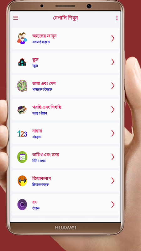 শ্রেষ্ঠ শ্রেষ্ঠ অ্যাপ্লিকেশন করুন জন্য মৌলিক নেপালি শব্দভান্ডার. আপনি আপনি দ্রুত শরীরের অংশ ও শব্দভান্ডার শব্দভান্ডার সম্পর্কে জানতে. আপনি আপনি সহজেই বর্ণমালার বুনিয়াদি ও বাক্যাংশ বাক্যাংশ উচ্চারণ শিখতে. নেপালি নেপালি ভাষা অ্যাপ্লিকেশন বিনামূল্যে অ্যাপ্লিকেশন আপনি সহজেই বিদেশী ভাষা ভাষা শিখতে. নেপালি নেপালি ভাষা শেখা অ্যাপ্লিকেশন খুব সহজ বৈশিষ্ট্য. নেপালি নেপালি ভাষা শিখুন অ্যাপ্লিকেশন ব্যবহার ব্যবহার. নেপালি নেপালি ভাষা