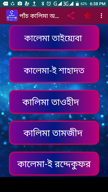 Five Kalima ( পাঁচ কালিমা ) is a simple Islamic App with audio which is suitable for both, native English and Bangla speaker.