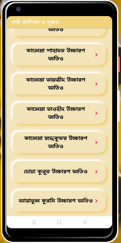 আপনারা শুনে শিখতে পারেন পাঁচ কালিমা অডিও দেওা.়া হয়েছে সুন্দর করে বুঝতে সুবিধা হয় ।যারা মু Das ist alles ্য পাঁচ কালেমা অর্থ সহ বাংলা দেওয়া হয়েছে এবং ৫ কালেমা বাংলা সহ সুন্দর উচ্চারণ দেওয়া হয়েছে । আয়াতুল কুরসি বাংলা ও আরবী জানার জন্য আমার মন ে হয় এখানে আপনি ভালোভাবে বুঝতে পারবেন। আয়াতুল কুরসি ও দোয়া কুনুত অনেক উপকারী দিক ত ুলে ধরা হয়েছে। আয়াতুল কুরসি বাংলা ও আরবি যারা শিখতে চান আজই নিতে পারেন মোবাইল অ্যাপ যখন ইচ্ছা পড়তে ও শুনত ে পারবেন। এখান এছাড়াও আছে দোয়া কুনুত বাংলা ও আরবী।আমা দের মধ্যে অনেকেই আছেন যারা বিতর নামাজের দোয়া কুনুত জানি না তারা অডিও শুনে শিখতে পারেন।বিশষ করে যার বিতর নামাজ যখন পড়ি তখন দুআ কুনুত প্রয় োজন হয় তখ দুয়া কুনুত না জানলে নামাজ হবে না। তাই অবশ্যই শিখতে হবে এই দোয়া গুলো । ফজিলত অনেক আছে।
