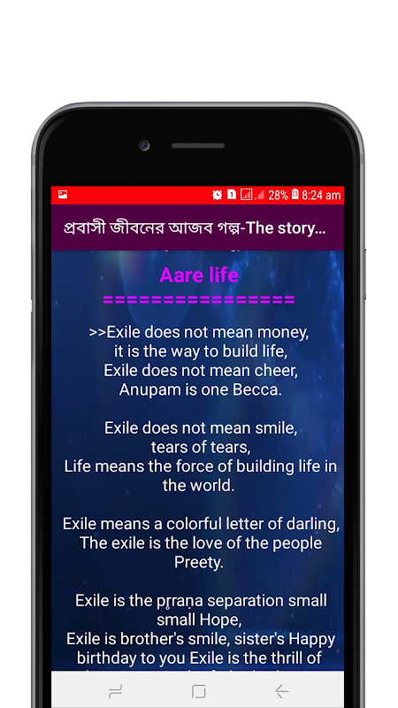 আমরা অনেকে গল্প/ কবিতা পড়তে অনেক ভালবাসি, আবার কেউ এগুলো পছন্দ করি না । কিন্তু এখানে আপনানাদের জন্য এমন কিছু গল্প/ কবিতা সাজানো আছে যা আপনাকে পড়তে বাধ্য করবে । আর আপনার মনকে সতেজ করে তুলবে । আপনি ও ভাববেন আসলে যা হয় তাই ভাল আর যা হবে তা ভালই হবে । ছোট বয়সে মন ভেঙ্গে যাবে যা পড়ে এফেক্ট করতে পারে । আর তাই যারা অনেক কষ্টে ভুগছেন শুধু তারাই ইন্সটল করুন । প্রবাসী ভাইদের জন্য এমন কিছু গল্প সংগ্রহ করা আছে যা চোখে জল এনে দিবে আপনার ।