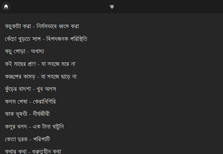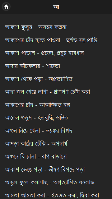 বাগধারা সংগ্রহ এপটি শিক্ষার্থীদের জন্য অতি গুরুত্বপূর্ণ। আশা করি আপনাদের ভালো লাগবে ও কাজে আসবে।