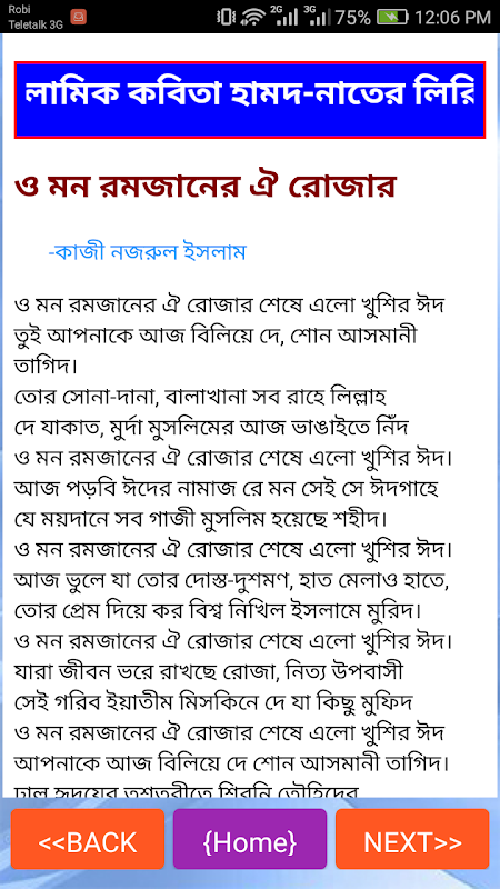 ”বিখ্যাত কবি নজরুল ইসলাম (সব)”অ্যাপসটির মাঝে যে সব Content গুলো আপনি পাবেন তা হলো: