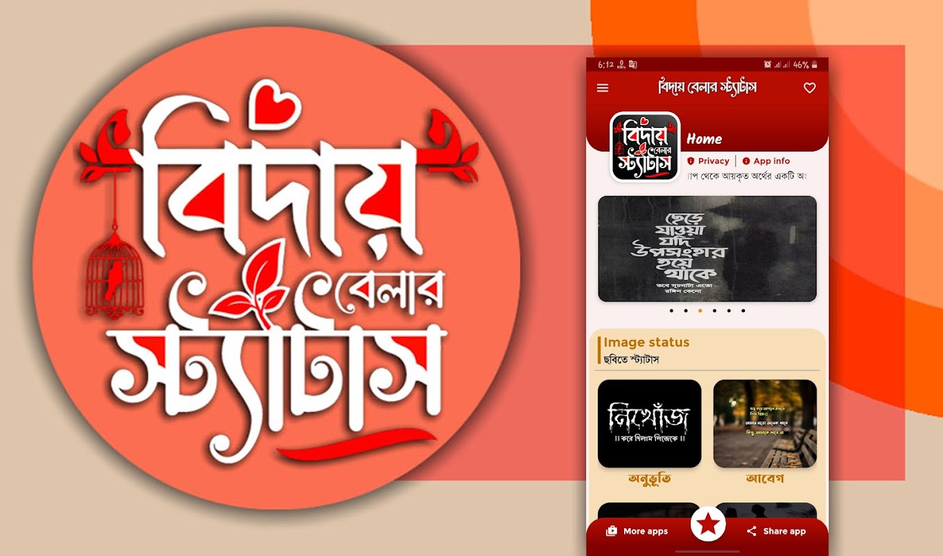 বিদায় বেলার স্ট্যাটাস ২০২৩ অ্যাপ টিতে মূলত ব িদায়ের সময় যাদের প্রিয়জনের মনে যে ভালোবাসা র বিরহের মেসেজ গুলো প্রকাশ পায় এবং বিদায় বেল ার আবেগি স্ট্যাটাস খুজে ফেসবুক স্ট্যাটাস পোস্ ট করে থাকেন তাদের জন্য তৈরি করা।