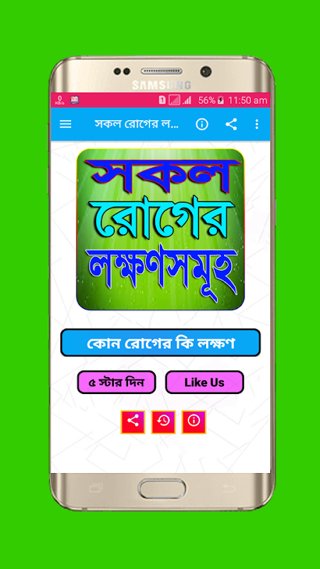 “বিভিন্ন রোগের লক্ষণ ও চিকিৎসা সমূহ” অ্যাপটিতে বিভিন্ন রোগের লক্ষণ, রোগের নাম, বিভিন্ন রোগের চিকিৎসা, রোগের ঔষধ ইত্যাদি নির্দেশিকা দিয়েছি।