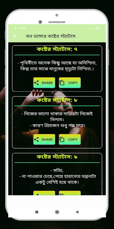 এই রকম আরো কষ্টের স্ট্যাটাস পেতে অ্যাপসটি ডাউনলোড করে দেখতে পারেন।