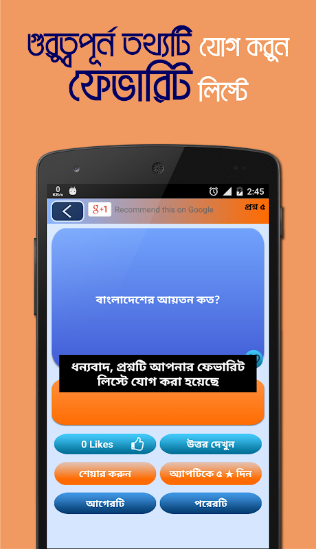 সাধারণ জ্ঞান এর উৎকর্ষতায় অ্যাপটির জুড়ি নেই। এখনই ডাউনলোড করুন আর শেয়ার করুন সকল বন্ধু-বান্ধবদের সাথে।