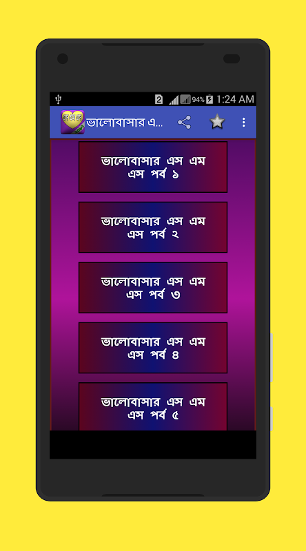 ভালোবাসার মানুষ কে খুশি রাখতে প্রয়োজন হয় কবিতা অথবা এসএমএস আর এই এস এম এস সবাই সাজিয়ে লিখতেও পারেন না। তাহলে কি করবেন? চিন্তা নেই আমরা আপনাদের জন্য নিয়ে এলাম ভালবাসার এস এম এস আপনি শুধু পড়বেন আর যেটা পছন্দ সেটা ক্লিক করে পাঠিয়ে দিবেন আপনার প্রিয় মানুষ কে। এর জন্য আমরা ভালোবাসার মেসেজ অ্যাপ টি তে রেখেছি sms কপি ও সরাসরি সেন্ড করার অপশেন।