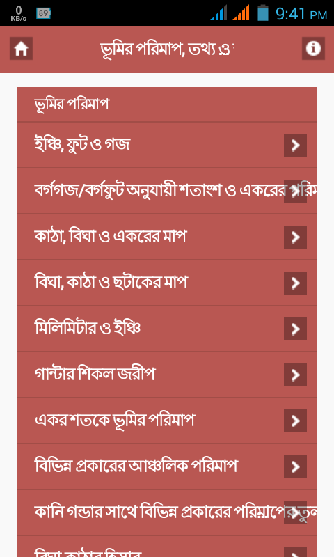 এপ টিতে আপনি ভূমির পরিমাপ ও ভূমি সম্পর্কিত বেশ কিছু তথ্য পাবেন.