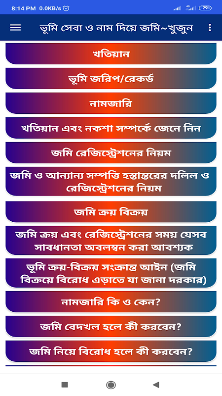 HAFTUNGSAUSSCHLUSS: Dies ist keine offizielle App. Wir sind ohnehin mit keinem staatlichen Unternehmen verbunden, werden von diesem nicht unterstützt oder gesponsert. Wir unterhalten keine staatliche Einrichtung und gehen keine Partnerschaft mit staatlichen Unternehmen ein. Diese Anwendung verwendet nur Inhalte von Drittanbietern, die unter https://land.gov.bd/ frei verfügbar sind.