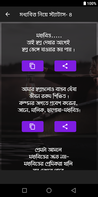 মধ্যবিত্ত নিয়ে স্ট্যাটাস- এই অ্যাপটি বানানো হলো সকলের জন্য- আমাদের সমাজের মধ্যবিত্ত দের জীবন, আশা, স্বপ্ন নিয়ে কিছু সেরা স্ট্যাটাস ও উক্তি শেয়ার করলাম ।