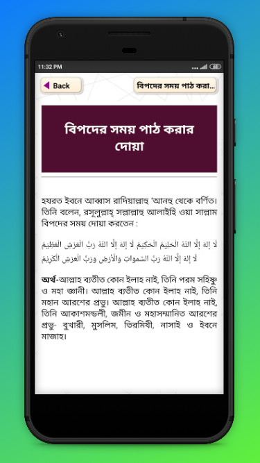 আমাদের অ্যাপটিতে কোনও প্রকার পাঠ্যবইয়ের এর সহায়তা ছাড়াই জেনে নিন প্রয়োজনীয় কয়েকটি দোয়া( duaas) । পুরো দিন দোয়া দ্বারা ঘেরা- দিনের শুরুতে মানে ঘুম হতে ওঠতে দোয়া(masnoon dua) দিনের শেষে মানে ঘুমানোর দোয়া(masnoon doa), ঘরে হতে বের হতে দোয়া(masnun dua), ঘরে প্রবেশ করতে দোয়া, মসজিদে প্রবেশের দোয়া, মসজিদ হতে বের হওয়ার, গাড়িতে ওঠার দোয়া, মা-বাবার জন্যে দোয়া,খাওয়ার দোয়া,সকল রোগ থেকে মুক্তির দোয়া(rog muktir doa),মহামারী থেকে বাচার দোয়া,বিপদ থেকে মুক্তির দোয়া,কঠিন রোগ থেকে মুক্তি পাওয়ার দোয়া ইত্যাদি।এই সব প্রতিদিনের দোয়া(daily dua),সকল প্রকার রোগ থেকে মুক্তির দোয়া(rog muktir dua) এবং প্রয়োজনীয় দোয়াগুলো( important dua)পদে পদে আপনাকে পাপ কাজ করতে বাধা দেবে।