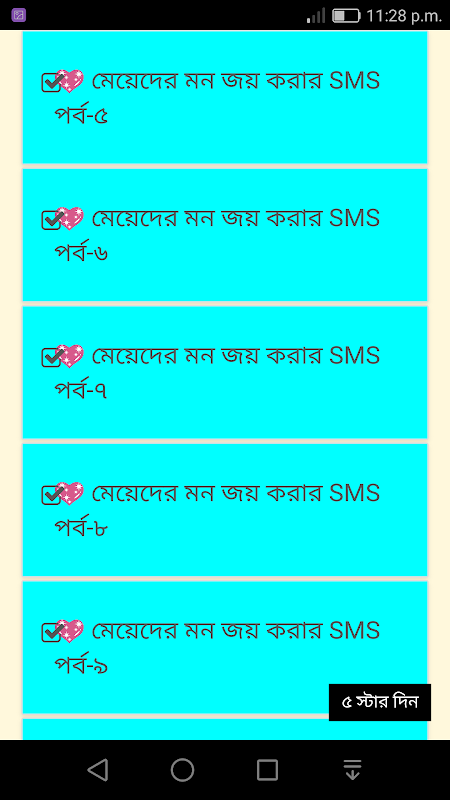 Meyeder Mon joy korar sms is our updated sms app where you will find some exclusive and new sms. You can collect love, friendship, general or regular, remembering and few Islamic sms from this nice app. It can help you to express yourself and your passion to your fnf.