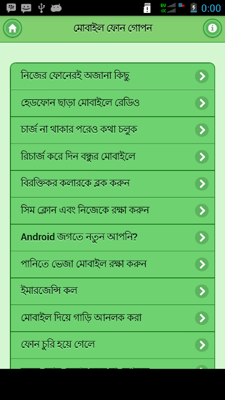 এই অ্যাপ্লিকেশন যেমন টিপস এবং আপনার মোবাইল ফোন ব্যবহার নিখুত ঠাট, রয়েছে: