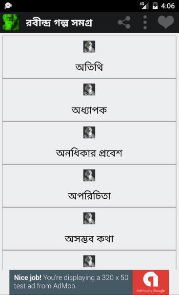 This android book app of "Rabindranath All stories" is a collection of all stories of Rabindranath Tagore.