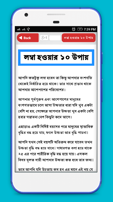 দৈনন্দিন জীবনের যে কোন ক্ষেত্রে সুসাস্থের পাশাপাশি উচ্চতা অনেক গুরুত্বপূর্ণ। বয়সের সাথে সামঞ্জস্য উচ্চতা সাস্থের সঠিক বিকাশের পরিচয় দেয়। অফিস আদালত থেকে শুরু করে যে কোন স্থানেই এর গুরুত্ব অপরিসীম। কথায় আছে আগে দর্শনদারী তারপর গুণবিচারী। তাই মেধাবী হওয়ার সাথে সাথে দেখতে সুন্দর হওয়াটাও জরুরী। লম্বা হওয়ার সহজ উপায় গুলো অনুসরণ করে আপনার উচ্চতা বাড়াতে পারবেন। লম্বা হওয়ার উপায় অ্যাপে যেমন দ্রুত লম্বা হওয়ার পদ্ধতিগুলো উপস্থাপন করা হয়েছে তেমনই প্রতিদিনকার খাদ্যাভ্যাস ও সুসাস্থের যাবতীয় বিষয় নিয়েও পর্যাপ্ত আলোচনা করা হয়েছে।
