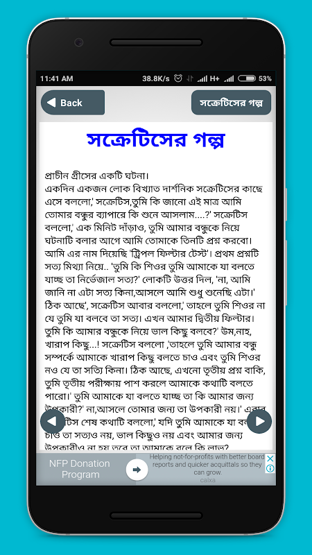 জীবন বদলানো ও শিক্ষামূলক অনুপ্রেরণামূলক inspirational story in bengali সব ছোট বাংলা গল্প এর মধ্যে শিক্ষামূলক ঈশপের গল্প - Eshoper Golpo (৫০ টি গল্প), শেখ সাদির গল্প, বিখ্যাতদের মজার গল্প, বিখ্যাতদের জীবনের গল্প বেশি জনপ্রিয়। এগুলোর মাঝে বিভিন্ন রকম shikkha mulok golpoশিক্ষামূলক গল্প bangla mojar mojar golpo ভালো গল্প নিয়ে এই ফ্রি বাংলা এপ টি বানানো হয়েছে। আশা করি আপনাদের ভাল লাগবে। বিভিন্ন শিক্ষামূলক গল্পসমূহ বা অনুপ্রেরণার গল্প বই পড়ে আমরা যেমন মজা পাই এবং শিক্ষণীয় জিনিস শিখতে পারি তেমনিভাবে এই অ্যাপটিও আপনাদের সেভাবেই সাহায্য করবে। শিক্ষামূলক গল্প বাস্তব জীবন থেকে বা শিক্ষামূলক গল্প educational story, শিক্ষামূলক গল্প ও ঘটনা - Golpo পড়ে এগুলো থেকে শিক্ষা নিয়ে জীবন সম্পর্কে আমাদের দৃষ্টি ভঙ্গি ঠিক করা উচিত, তাহলে জীবনকে আরও সুন্দরভাবে উপলব্ধি করা যাবে। জীবন হবে আরও সার্থক, আরও সুন্দর। সবাইকে ধন্যবাদ।