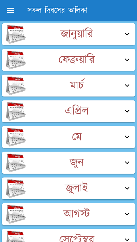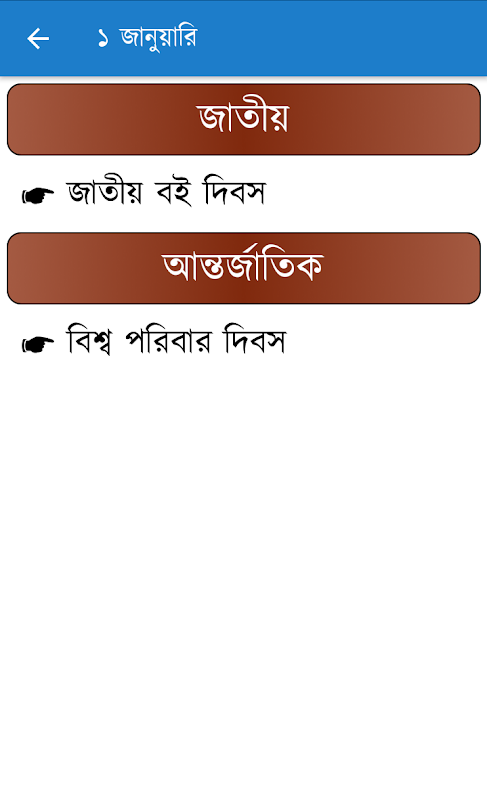 Alle Nationalfeiertage von Bangladesch und seine historische Beschreibung können über diese App gefunden werden. Die Ereignisse des Unabhängigkeitstages, des Siegestages und des Sprachmärtyrertages von Bangladesch wurden hervorgehoben.